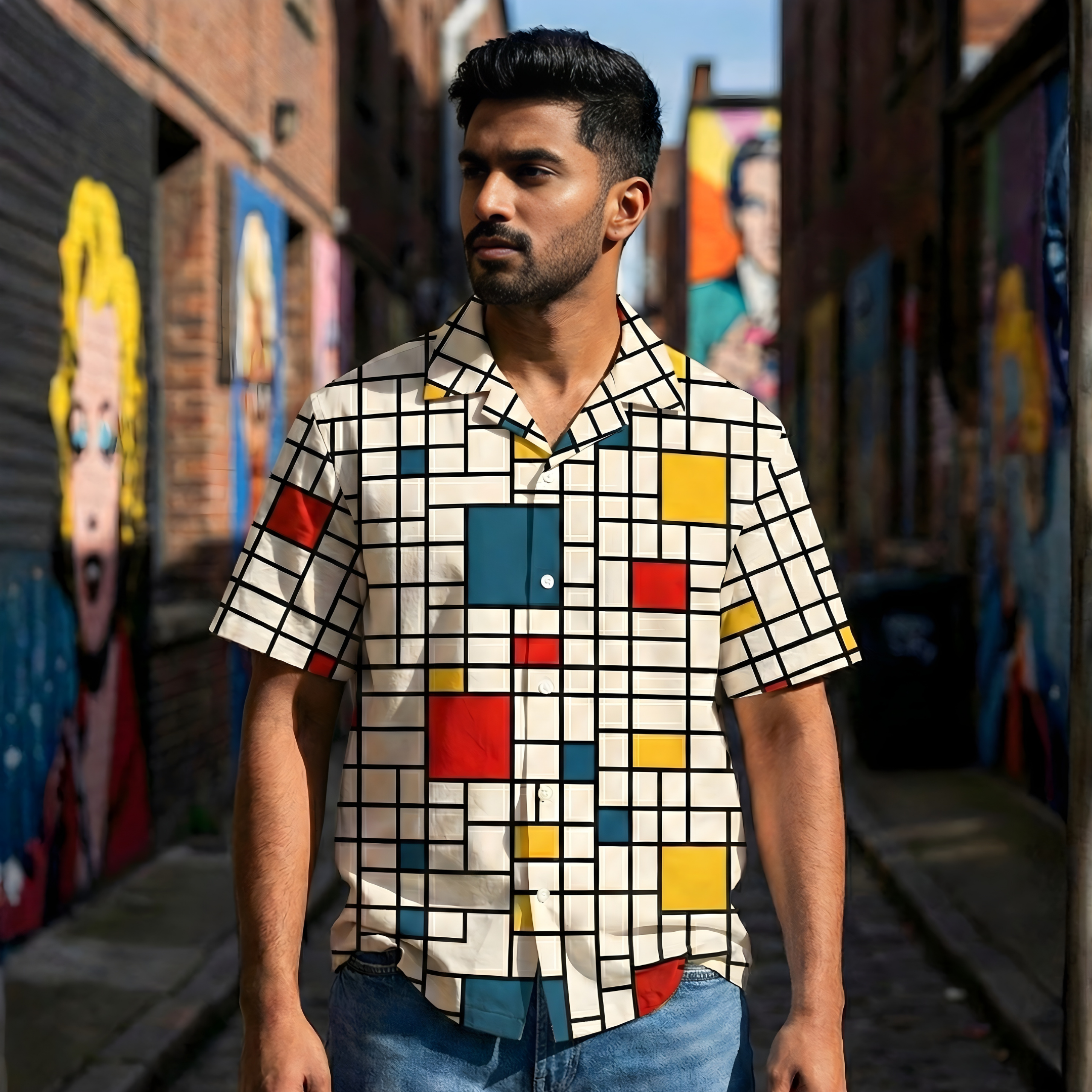 The Pop-Art Block Men’s Shirt is inspired by bold geometry and modern pop-art aesthetics. Featuring a striking grid pattern with vibrant blocks of colour, this shirt brings a graphic edge to everyday style — confident, creative, and unapologetically fun.