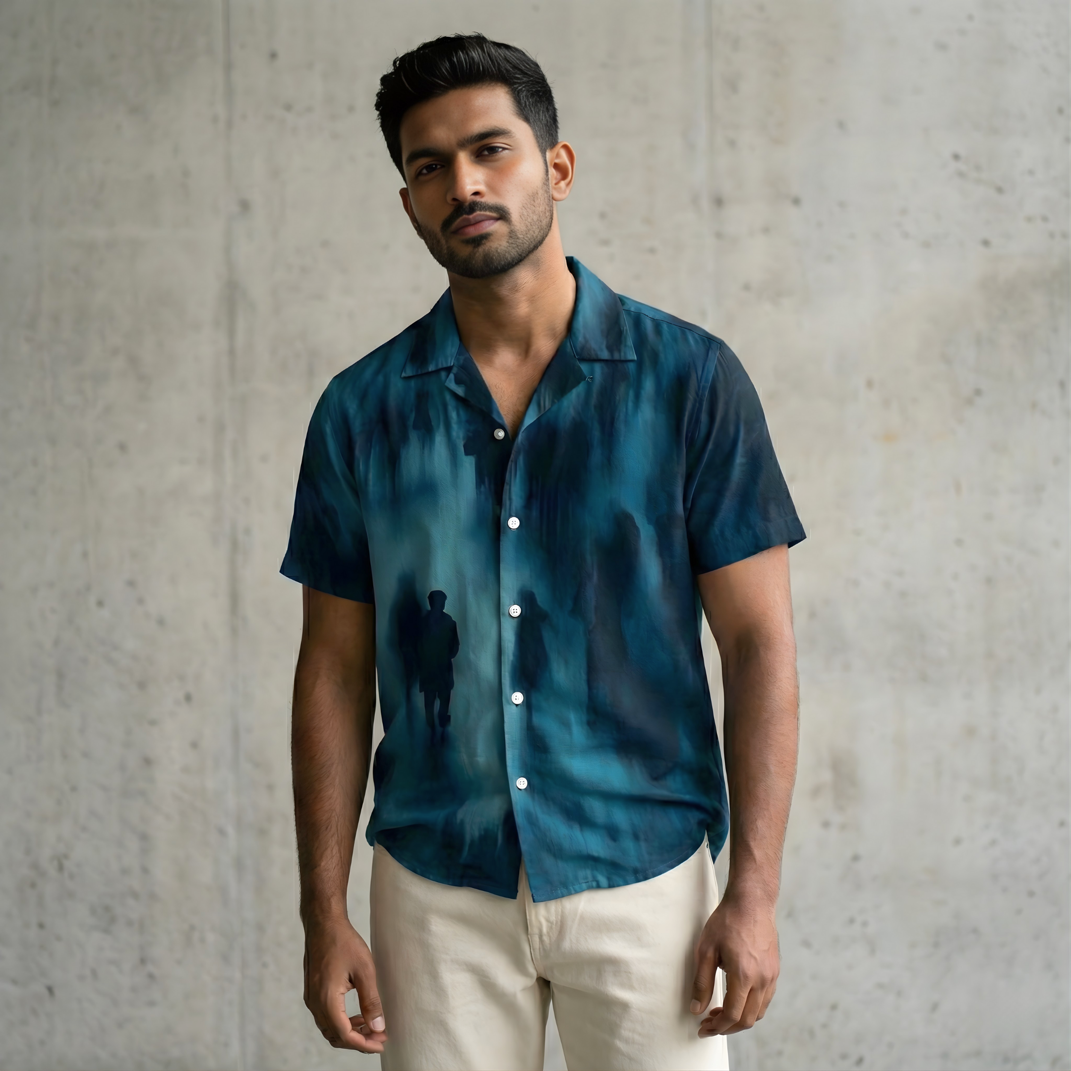 The Urban Solitude Men’s Shirt captures the feeling of standing still in a moving world. Designed with deep, moody tones and an abstract silhouette-inspired print, this shirt reflects modern solitude — calm, introspective, and effortlessly stylish.